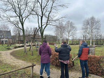 Eén van de maatregelen is het vergroten van de afstand tussen de dieren en voorbijgangers. Dit doen we door het wandelpad aan de kant van de N34 te verwijderen. Deze kant van het hertenkamp wordt daardoor een rustige plek voor de dieren. Ook verplaatsen we het hek aan de voorkant 3 meter naar achteren. Daardoor ontstaat er meer ruimte tussen het fietspad en het hertenkamp. In de vrijgekomen ruimte maken we een nieuw wandelpad. Zo staan bezoekers van het hertenkamp niet meer op het fietspad.